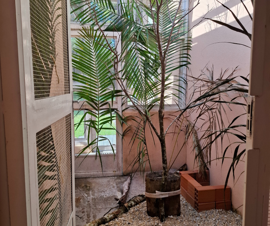 Ao promover estímulos físicos, cognitivos, sensoriais e sociais, o enriquecimento ambiental contribui para a recuperação de comportamentos naturais, melhora a qualidade de vida dos animais sob cuidados humanos e aumenta as chances de sucesso em processos de reintrodução à natureza, como acontece atualmente com as onças-pardas Alfa e Beta no Cerrado.
