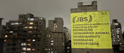Banners na Marginal Tietê expuseram modelo de negócio destrutivo da JBS, que intimidou nossa equipe de ativistas
