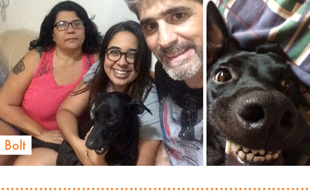 Algumas pessoas acham loucura adotar um cachorro que não seja filhote, mas, da mesma forma que nossos amigos humanos, nossos amigos de quatro patas têm personalidades diferentes. Os primeiros dias do Bolt em casa foram difíceis, ele precisava confiar em nós, assim como precisávamos conhecê-lo melhor e respeitar seu jeito de ser. Um mês depois e ele já era um membro indispensável da família, trazendo aquela alegria e amor que só os cães possuem. Somos gratos a todos que um ano atrás resgataram e trataram do nosso “bebê”. Muito obrigada! – Monique